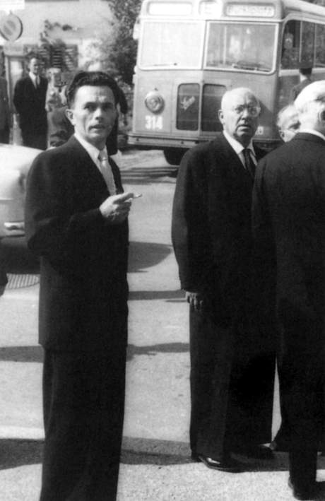 und janka überqueren eine straße. im hintergrund kommt ein bus. diese unglaubliche geschichte, die walter janka 1989 in seinen erinnerungen beschreibt und stefan heym schon 10 jahre früher zu einer szene in dem roman "collin" ausbaute, benötigt einen geschmeidigen erzähler. einen, der überall dabei war und intimkenntnisse der protagonisten hat: den chauffeur leonard jäger, der janka noch aus dem spanischen bürgerkrieg kennt und hin und wieder auch der chauffeur anna seghers war. den die geschichtlichen umstände ans "steuerrad der mächtigen" gespült haben... dank der spielfreude des schauspielers dieter moor, der die rolle des chauffeurs besetzt, ist "mein mercedes steht zur verfügung" zu einem intensiven spiel von fiktion und realität geworden; zu einer auslotung der möglichkeiten des ERZÄHLENS im akustischen radiofeature.